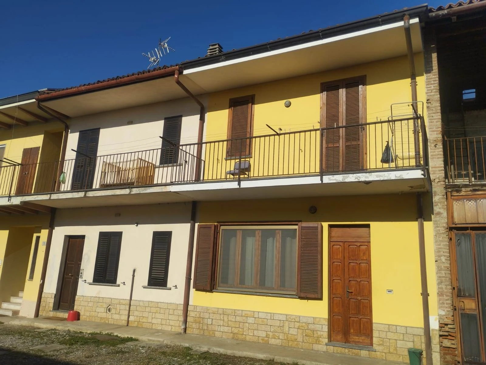 Nel centro del paese e in prossimità del fiume ADDA; AMPIA porzione, libera cielo/terra disposta su due livelli abitativi! L'ingresso indipendente è al piano terra, soggiorno con CAMINO e cucina ABITABILE, dallla cucina è presente un cortiletto interno e riservato di 18mq ideale per stare all'aperto nelle belle stagioni!! Al piano primo troviamo il disimpegno che conduce al bagno dotato sia di VASCA che di DOCCIA e alle due COMODE camere da letto, pavimentate in PARQUET! La scala che colega i piani abitativi è pratica ed in muratura. L'abitazione possiede anche un balcone vivibile comunicante tra la seconda camera ed il bagno. C'è la possibilità di posteggiare l'auto davanti alla propria soluzione immobiliare.