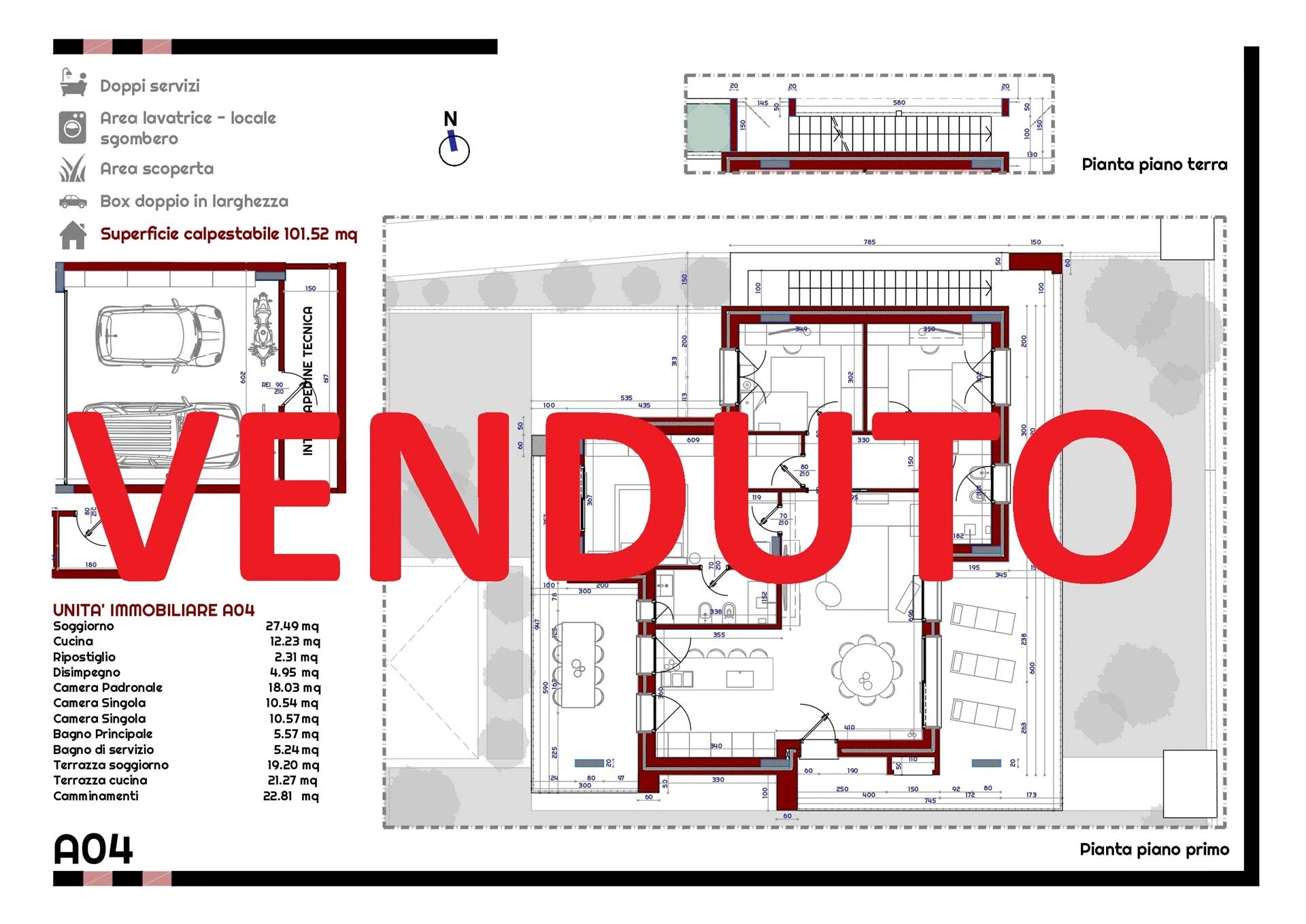 Anche per queste soluzioni sono inclusi box doppio in larghezza e cantina.