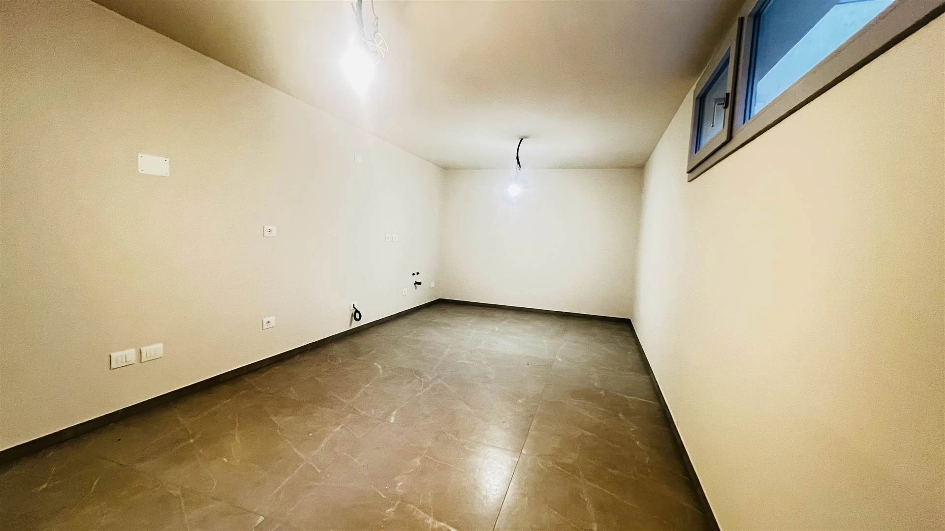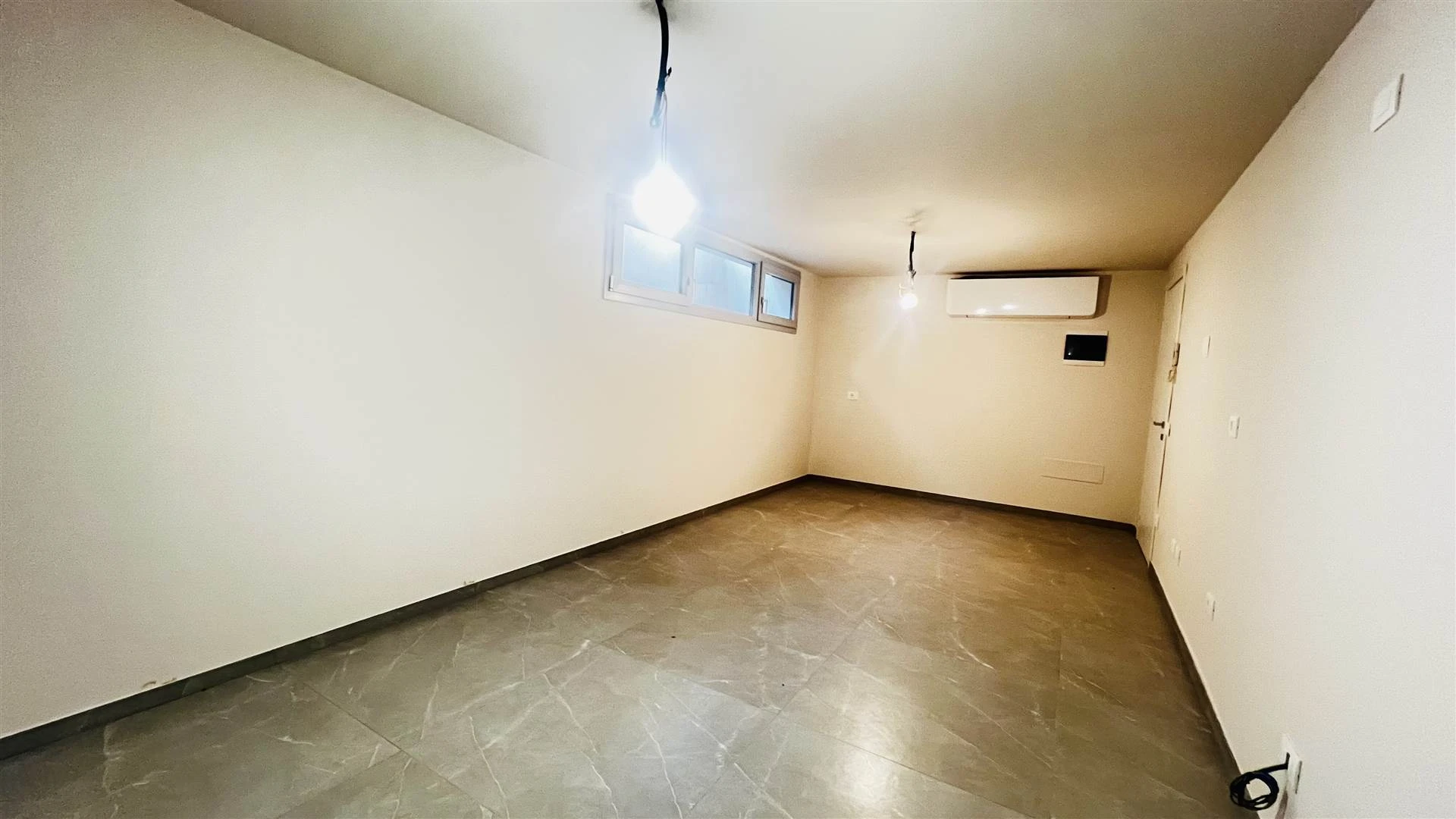 L'abitazione si divide su due livelli collegati da una scala interna curata nei dettagli. Al piano principale si trova l'ingresso che conduce a un soggiorno luminoso, una camera matrimoniale, una camera singola e un bagno con doccia rifinito con materiali moderni. Il piano interrato è occupato da una taverna climatizzata, utilizzabile come zona relax o spazio per gli ospiti, completa di predisposizione per una seconda cucina. Su questo livello si trovano anche una lavanderia attrezzata per lavatrice e asciugatrice con un secondo box doccia e un pratico ripostiglio.