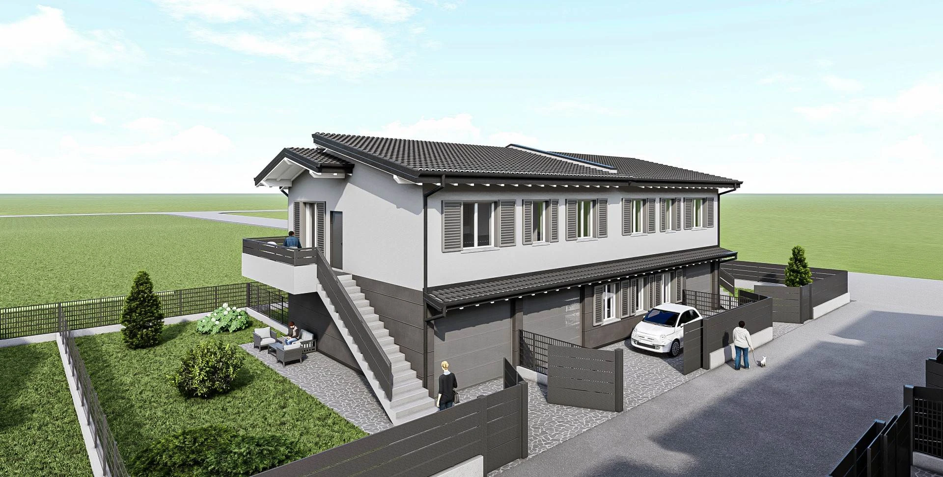 appartamento in VILLA di nuova costruzione esteso su un unico piano abitativo caratterizzato da ingresso INDIPENDENTE con ampio giardino privato di 98mq! Il QUADRILOCALE, di ben 91mq, gode della tripla esposizione, possiede il soggiorno con cucina A VISTA, le TRE camere da letto, bagno e ripostiglio. La zona giorno ha lo sfogo sul vivibile balcone!! Il Box è posto al piano terra all'interno della soluzione immobiliare. Al piano terra è collocato un pratico PORTICO ideale per stare all'aperto nelle belle stagioni!! Senza alcuna spesa condominiale!