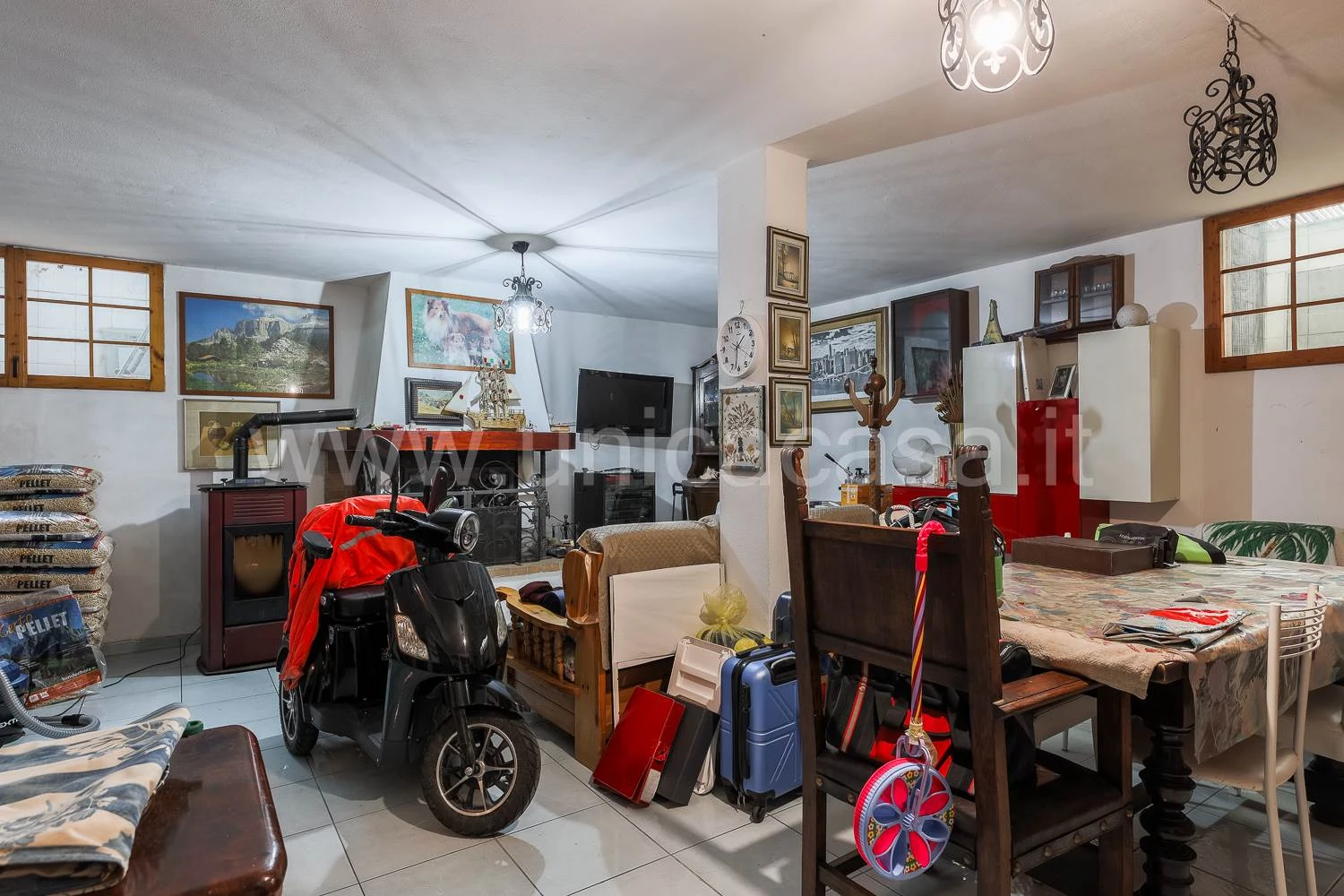 Il piano seminterrato ospita una taverna accogliente con stufa a pellet idro, un ampio bagno/lavanderia, una cantina e l'accesso diretto al box auto, dotato di serranda e cancello automatizzati.