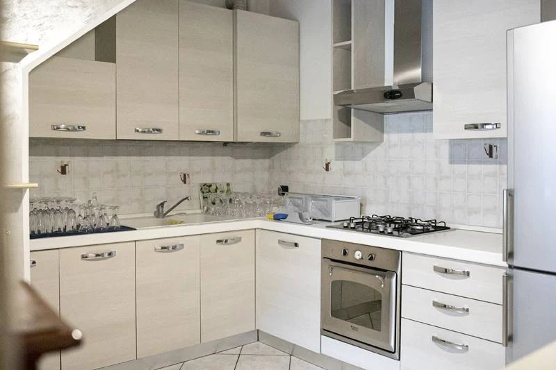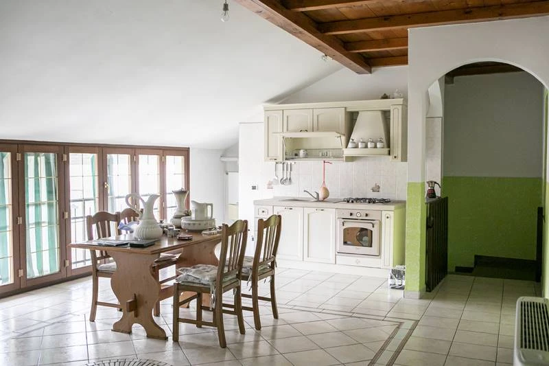 Dal secondo appartamento, vicino all'ingresso, si accede alla MANSARDA, completamente RIFINITA e caratterizzata da una luminosa zona giorno con CUCINA a vista e da due camere da letto con il suo bagno!!