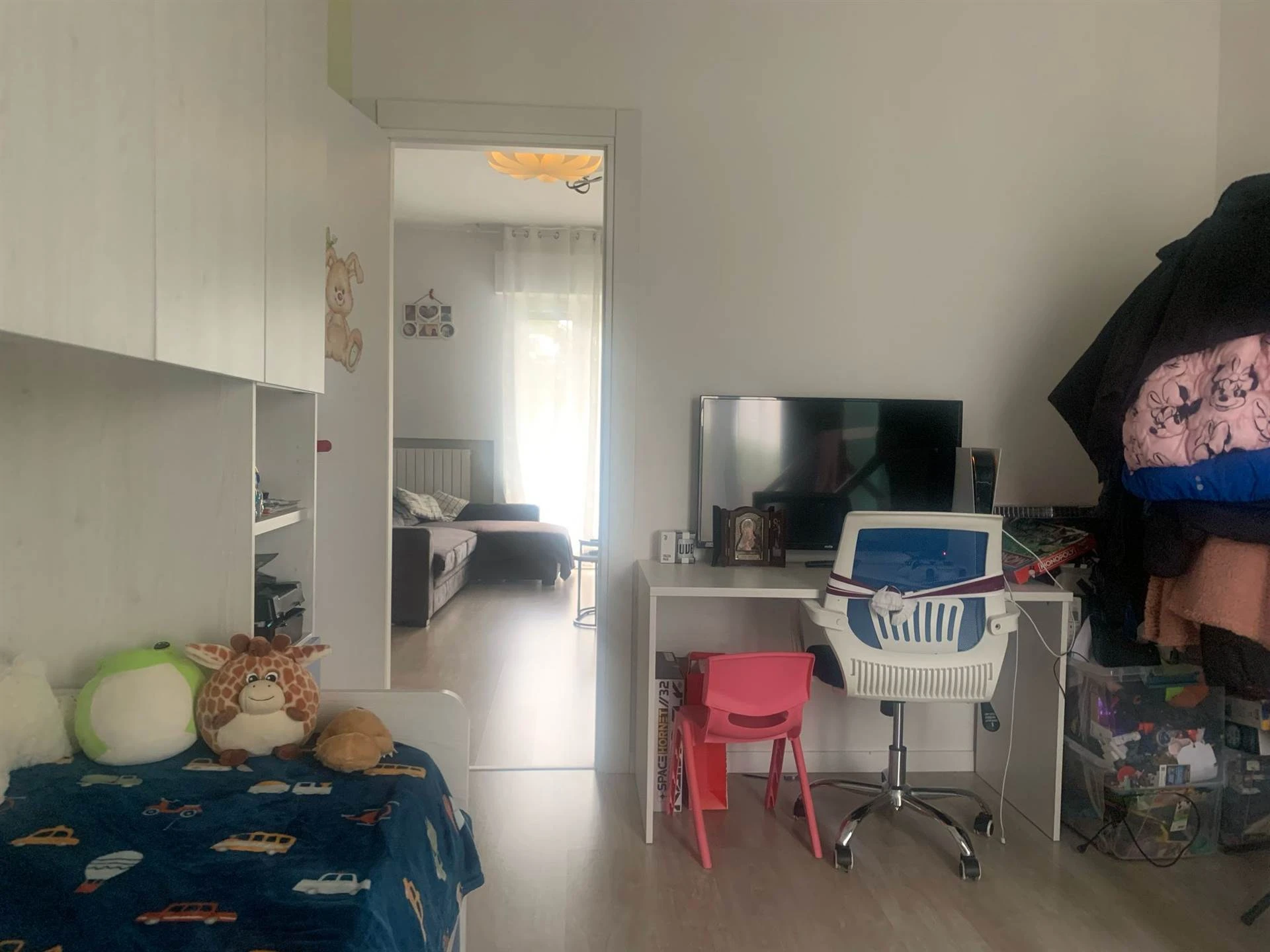 L'appartamento si apre su un accogliente ingresso che conduce a un grande soggiorno, reso particolarmente luminoso dall'affaccio su un terrazzino vivibile, perfetto per godersi momenti di relax all'aperto. La cucina è abitabile, con accesso diretto a un comodo balcone che garantisce ulteriore sfogo esterno.