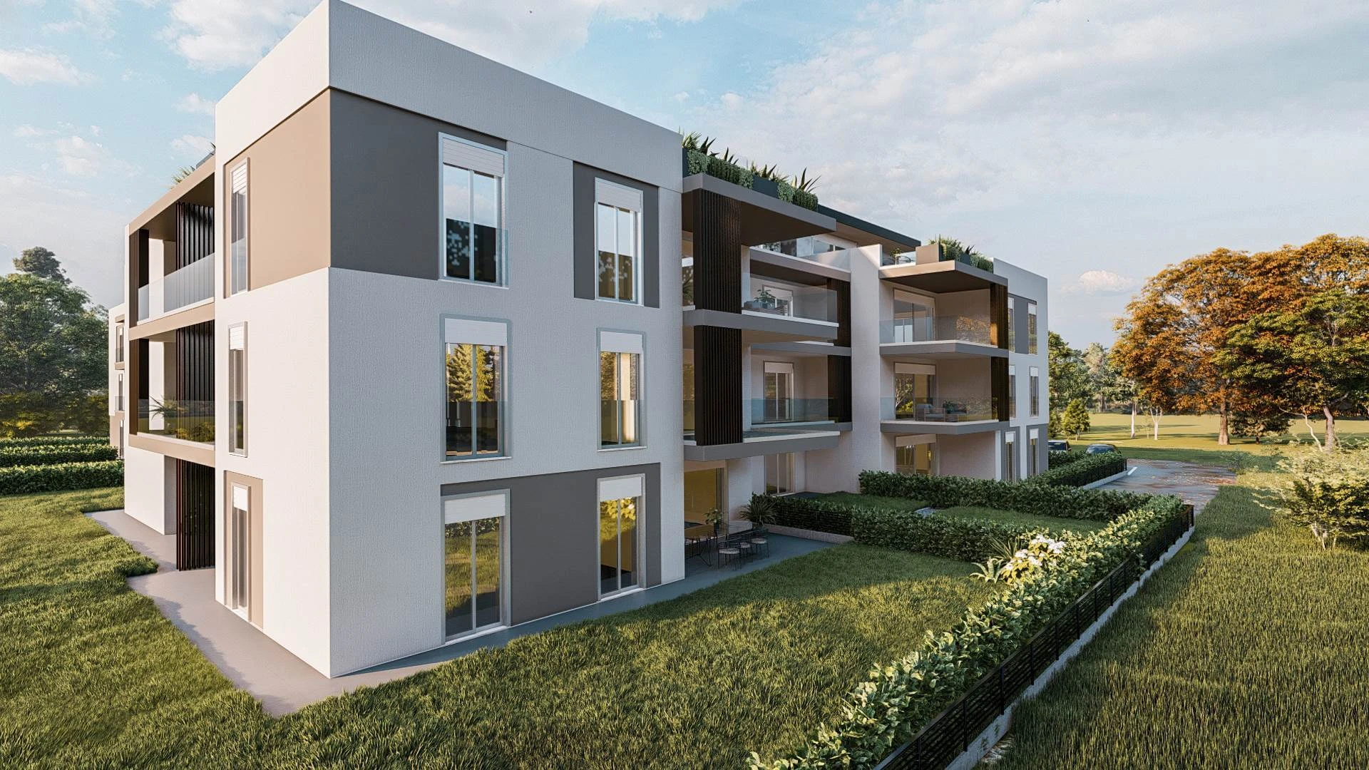 Lasciati conquistare dalla bellezza e dalla praticità del nuovo complesso "Residenza Celeste" a Trezzano Rosa. Scegli di vivere in un ambiente signorile, a pochi passi da tutti i principali servizi. La moderna realizzazione è costituita da due palazzine. Impianto termico totalmente autonomo, pannelli radianti a pavimento, raffrescamento in idro-split predisposto, pannelli fotovoltaici, ventilazione meccanica controllata, tapparelle in alluminio motorizzate, portoncini blindati classe 3, box con porte di tipo sezionale motorizzata, antenna e parabola satellitare di tipo digitale, per la sicurezza dei condomini verrà realizzato un impianti di videosorveglianza per il controllo dell'ingresso carrale interrato e dell'ingresso pedonale del vano scala, impianto dati e fibra, sono solo alcune delle caratteristiche del nuovo intervento ad alta efficienza energetica. La facciata dove trovano massimo risalto i terrazzi e i giardini privati nasconderà una solida struttura antisismica protetta da un efficiente isolamento termo-acustico che interesserà sia il perimetro esterno sia quello interno tra un appartamento e l'altro. Il risparmio e l'indipendenza energetica rappresentano l'elemento centrale dello stabile che prevedrà l'assegnazione ad ogni appartamento di un panello fotovoltaico individuale come da legge 10. Dal Q.E. verra predisposto un corrugato per una linea diretta al box dove sarà possibile installare una batteria di accumulo/stazione di ricarica automobili elettriche. In ciascuna unità immobiliare verrà realizzato impianto domotico a due moduli funzionanti, integrato con l'impianto elettrico e predisposto per la successiva installazione di eventuali moduli aggiuntivi. Saranno utilizzati impianti Smart Home di Vimar con modulo controllo carichi, apertura tapparelle e gateway che permette la connessione dell'impianto alla rete internet per il controllo dell'impianto tramite applicazione per smartphone "Vimar View" per controllare la casa connessa con una interfaccia semplice ed intuitiva. Si tratta di appartamenti all'avanguardia privi di qualunque barriera architettonica e ideali per coppie di tutte le età o famiglie già consolidate e con figli che amano la tranquillità di una zona residenziale senza rinunciare alla comodità dei servizi cittadini giornalieri. Gli edifici si trovano infatti in una posizione che consente di raggiungere a piedi le scuole, farmacia, supermercato, negozi di vicinato, cosi come la fermata autobus per stazione metropolitana di Gessate. termine di esecuzione dell'immobile è previsto entro il dicembre 2025. Appartamento C3 Appartamento posto al piano terra di quattro locali con doppi servizi di 115 commerciali. Appartamento di 104,76 mq con portici e area esterna pavimentata di 40,57 mq e giardino esclusivo di 85,22 mq. Ingresso nel luminoso soggiorno con angolo cottura e affaccio sul grande portico coperto, disimpegno notte con bagno, due camerette e camera matrimoniale con bagno in camera. Consegna dicembre 2025.