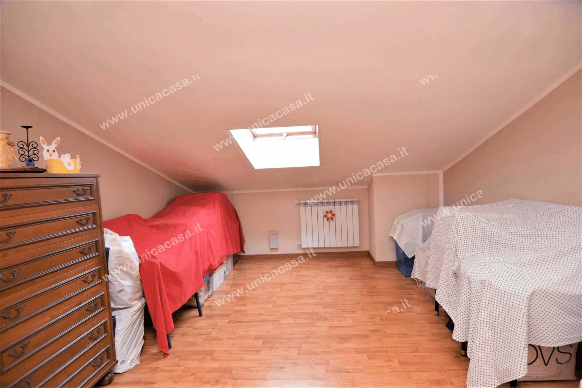 al piano primo – mansarda non abitabile ultimata con ottime finiture, avente altezza media di circa 2 m e dove ci si può tranquillamente ricavare una zona relax, zona hobby, laboratorio e molto altro ancora; completa di bagno e per un totale di 75 m2;