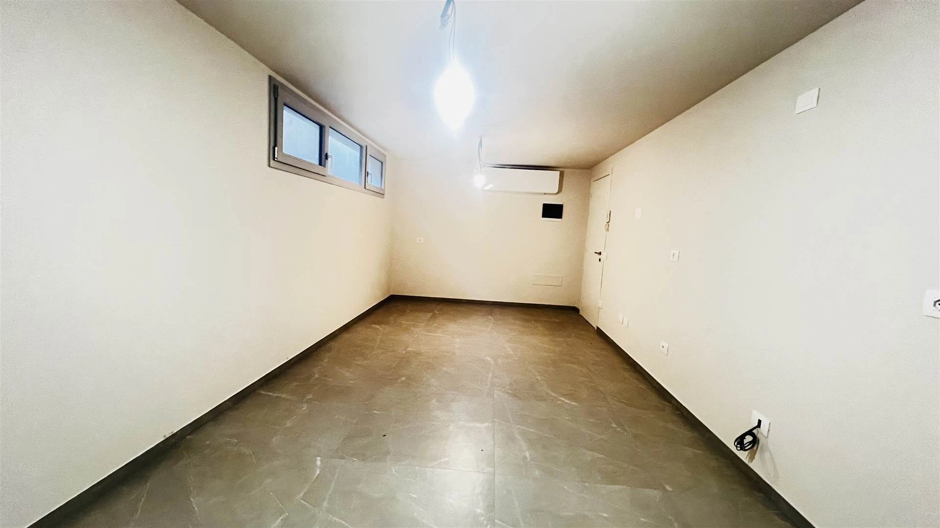 L'abitazione si divide su due livelli collegati da una scala interna curata nei dettagli. Al piano principale si trova l'ingresso che conduce a un soggiorno luminoso, una camera matrimoniale, una camera singola e un bagno con doccia rifinito con materiali moderni. Il piano interrato è occupato da una taverna climatizzata, utilizzabile come zona relax o spazio per gli ospiti, completa di predisposizione per una seconda cucina. Su questo livello si trovano anche una lavanderia attrezzata per lavatrice e asciugatrice con un secondo box doccia e un pratico ripostiglio.