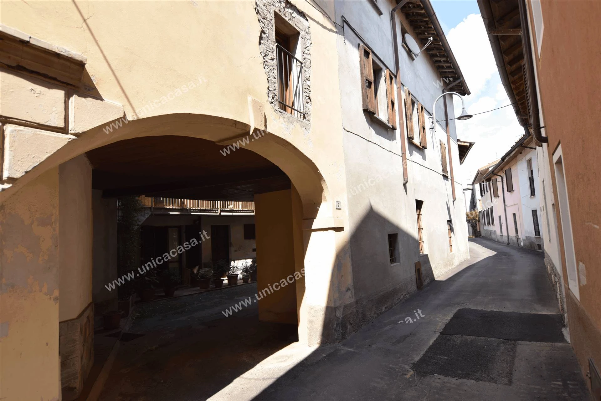 Nel CENTRO del paese, soluzione abitativa disposta su più livelli. Si accede dalla piccola corte, all'ingresso dell'immobile, dove al piano TERRA si ha la zona GIORNO con cucina abitabile lasciata a VISTA ed il soggiorno. Al piano primo si trova la zona notte con l'ampio disimpegno, le due CAMERE da letto, il bagno ristrutturato e il lungo BALCONE. Un ulteriore piano è adibito a SOTTOTETTO con BALCONE dove, grazie alla sezione alta, è possibile ricavare altre stanze con travi a VISTA! la casa libera TERRA-CIELO, è pavimentata in gres porcellanato EFFETTO LEGNO, serramenti a doppio vetro, doppia esposizione! Abitata due anni fa, necessità di una ristrutturazione. Senza alcuna spesa condominiale, LIBERA SUBITO! Abbinati alla soluzione ci sono due ripostigli utilizzati come cantine.